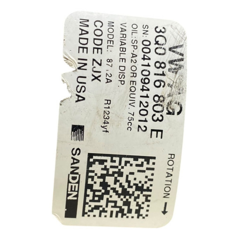 | Título de catálogo | Compressor Ar Condicionado 3q0816803e |